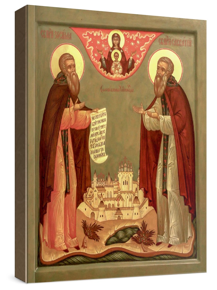 Зосима, савватий соловецкие (икона на дереве). Икона на заказ. Срок изготовления - 5-14 дней. Изображение нанесено на основу из натурального хвойного дерева методом прямой печати (не полиграфия). Деревянная основа иконы подвержена искусственному старению. Лик покрыт специальным лаком, что защищает икону от воздействий окружающей среды и обеспечивает хранение иконы в первозданном виде в течение нескольких десятилетий. Цена зависит от размера иконы (высота может незначительно отличаться от указанной величины в связи с точным соблюдением пропорций образца-оригинала): 10x13 - 1500 руб. 30x40 - 5000 руб. 60x80 - 15000 руб. 15x18 - 2250 руб. 40x60 - 8000 руб. 80x120 - 20000 руб. 20x25 - 3000 руб.