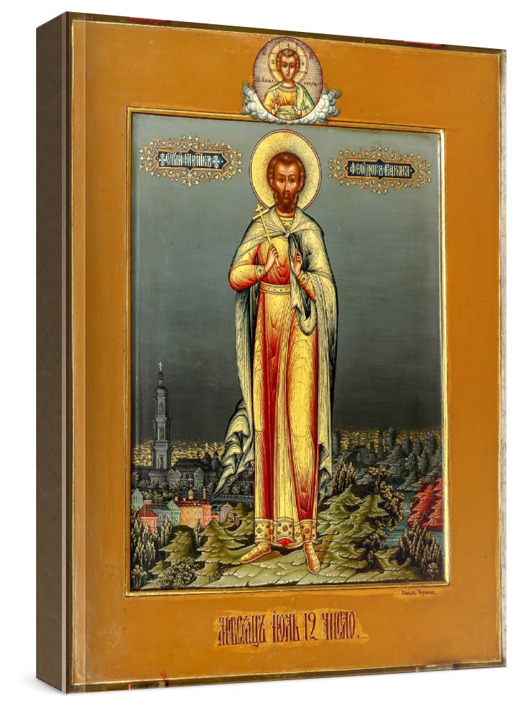 Феодор варяг (икона на дереве). Икона на заказ. Срок изготовления - 5-14 дней. Изображение нанесено на основу из натурального хвойного дерева методом прямой печати (не полиграфия). Деревянная основа иконы подвержена искусственному старению. Лик покрыт специальным лаком, что защищает икону от воздействий окружающей среды и обеспечивает хранение иконы в первозданном виде в течение нескольких десятилетий. Цена зависит от размера иконы (высота может незначительно отличаться от указанной величины в связи с точным соблюдением пропорций образца-оригинала): 10x13 - 1500 руб. 30x40 - 5000 руб. 60x80 - 15000 руб. 15x18 - 2250 руб. 40x60 - 8000 руб. 80x120 - 20000 руб. 20x25 - 3000 руб.