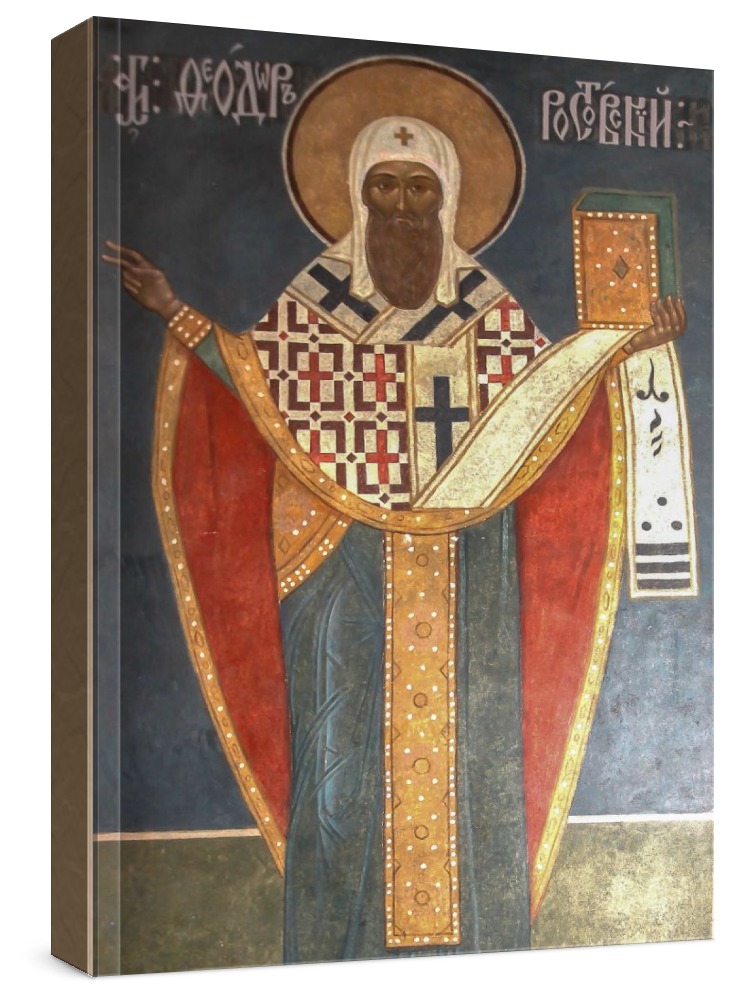 Феодор ростовский (икона на дереве). Икона на заказ. Срок изготовления - 5-14 дней. Изображение нанесено на основу из натурального хвойного дерева методом прямой печати (не полиграфия). Деревянная основа иконы подвержена искусственному старению. Лик покрыт специальным лаком, что защищает икону от воздействий окружающей среды и обеспечивает хранение иконы в первозданном виде в течение нескольких десятилетий. Цена зависит от размера иконы (высота может незначительно отличаться от указанной величины в связи с точным соблюдением пропорций образца-оригинала): 10x13 - 1500 руб. 30x40 - 5000 руб. 60x80 - 15000 руб. 15x18 - 2250 руб. 40x60 - 8000 руб. 80x120 - 20000 руб. 20x25 - 3000 руб.