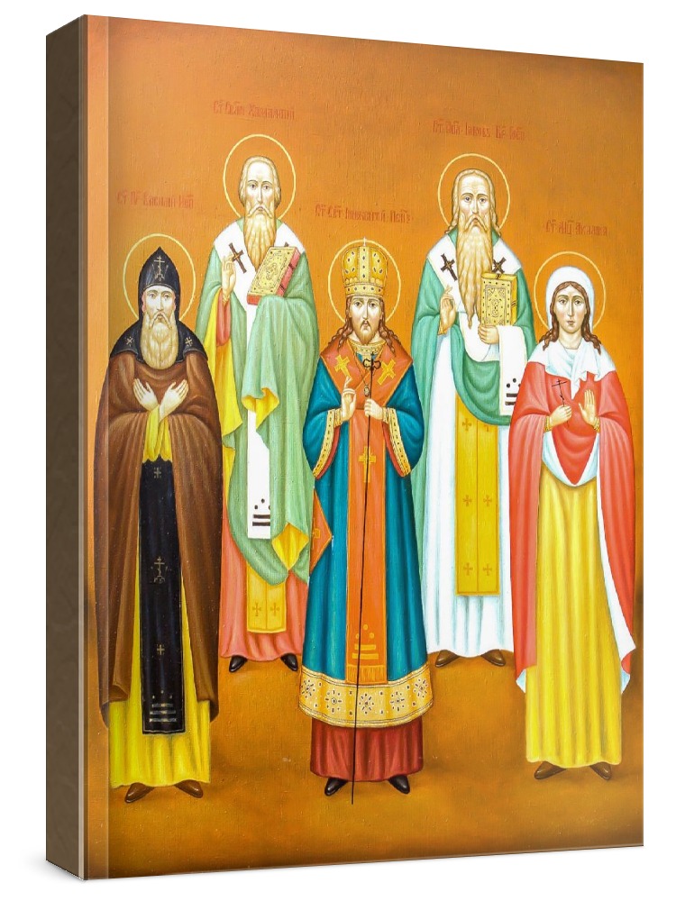 Василий, харлампий, акилина и иннокентий пензенский (икона на дереве). Икона на заказ. Срок изготовления - 5-14 дней. Изображение нанесено на основу из натурального хвойного дерева методом прямой печати (не полиграфия). Деревянная основа иконы подвержена искусственному старению. Лик покрыт специальным лаком, что защищает икону от воздействий окружающей среды и обеспечивает хранение иконы в первозданном виде в течение нескольких десятилетий. Цена зависит от размера иконы (высота может незначительно отличаться от указанной величины в связи с точным соблюдением пропорций образца-оригинала): 10x13 - 1500 руб. 30x40 - 5000 руб. 60x80 - 15000 руб. 15x18 - 2250 руб. 40x60 - 8000 руб. 80x120 - 20000 руб. 20x25 - 3000 руб.