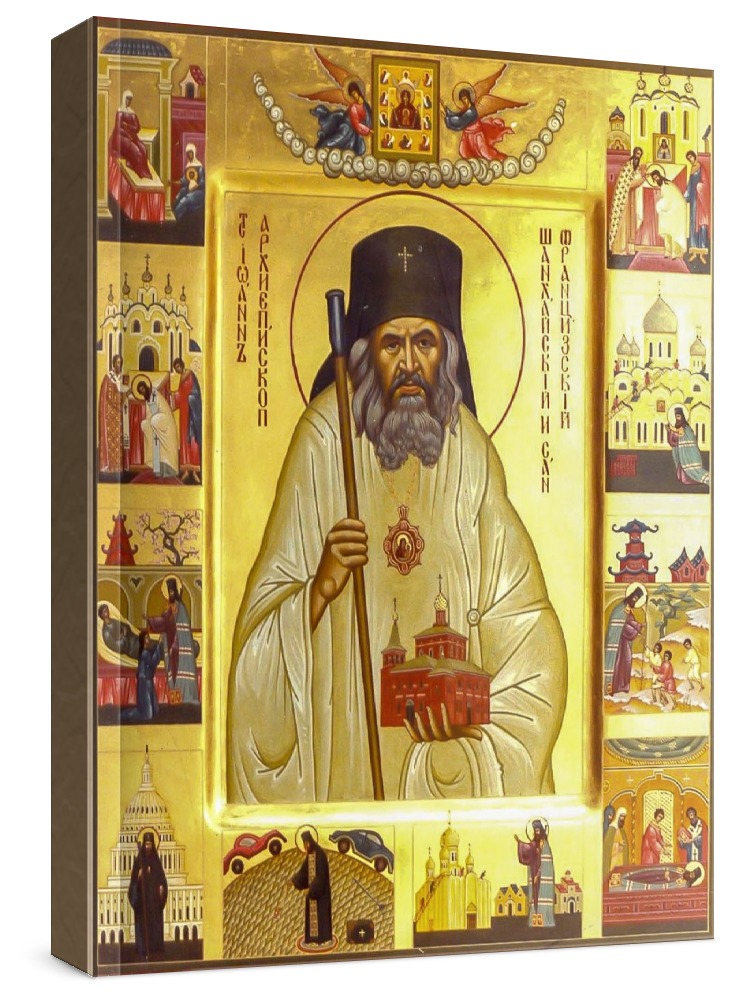 Иоанн шанхайский (икона на дереве). Икона на заказ. Срок изготовления - 5-14 дней. Изображение нанесено на основу из натурального хвойного дерева методом прямой печати (не полиграфия). Деревянная основа иконы подвержена искусственному старению. Лик покрыт специальным лаком, что защищает икону от воздействий окружающей среды и обеспечивает хранение иконы в первозданном виде в течение нескольких десятилетий. Цена зависит от размера иконы (высота может незначительно отличаться от указанной величины в связи с точным соблюдением пропорций образца-оригинала): 10x13 - 1500 руб. 30x40 - 5000 руб. 60x80 - 15000 руб. 15x18 - 2250 руб. 40x60 - 8000 руб. 80x120 - 20000 руб. 20x25 - 3000 руб.