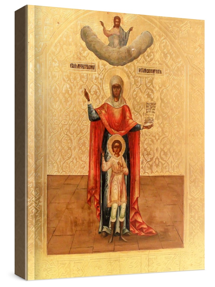 Кирик и иулитта (икона на дереве). Икона на заказ. Срок изготовления - 5-14 дней. Изображение нанесено на основу из натурального хвойного дерева методом прямой печати (не полиграфия). Деревянная основа иконы подвержена искусственному старению. Лик покрыт специальным лаком, что защищает икону от воздействий окружающей среды и обеспечивает хранение иконы в первозданном виде в течение нескольких десятилетий. Цена зависит от размера иконы (высота может незначительно отличаться от указанной величины в связи с точным соблюдением пропорций образца-оригинала): 10x13 - 1500 руб. 30x40 - 5000 руб. 60x80 - 15000 руб. 15x18 - 2250 руб. 40x60 - 8000 руб. 80x120 - 20000 руб. 20x25 - 3000 руб.
