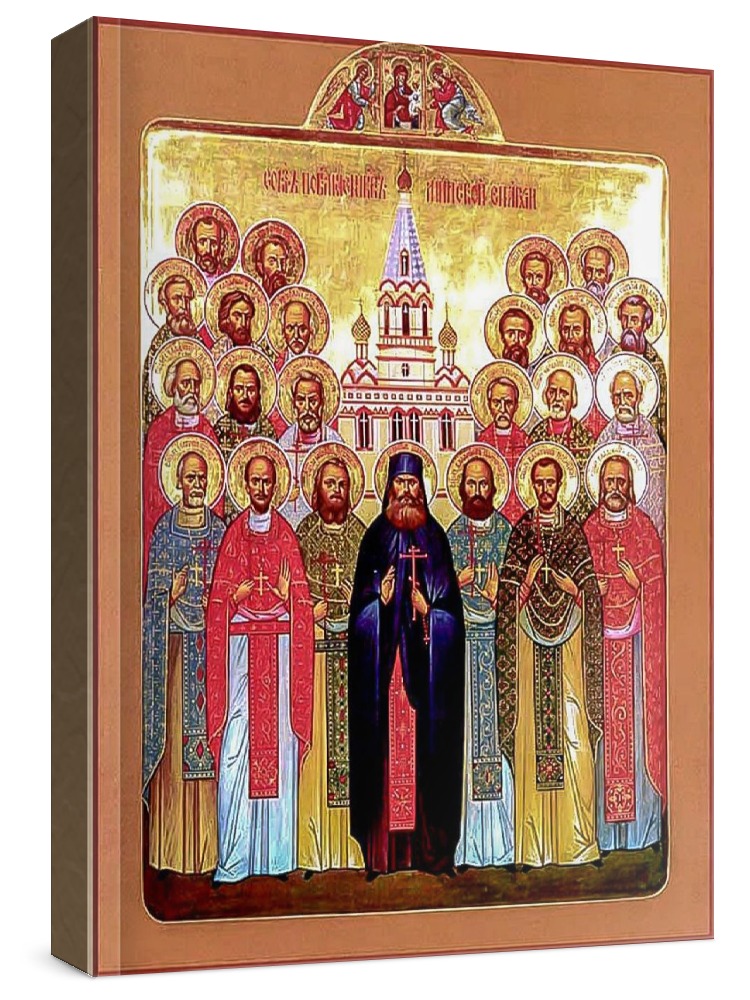 Белорусские новомученики (икона на дереве). Икона на заказ. Срок изготовления - 5-14 дней. Изображение нанесено на основу из натурального хвойного дерева методом прямой печати (не полиграфия). Деревянная основа иконы подвержена искусственному старению. Лик покрыт специальным лаком, что защищает икону от воздействий окружающей среды и обеспечивает хранение иконы в первозданном виде в течение нескольких десятилетий. Цена зависит от размера иконы (высота может незначительно отличаться от указанной величины в связи с точным соблюдением пропорций образца-оригинала): 10x13 - 1500 руб. 30x40 - 5000 руб. 60x80 - 15000 руб. 15x18 - 2250 руб. 40x60 - 8000 руб. 80x120 - 20000 руб. 20x25 - 3000 руб.