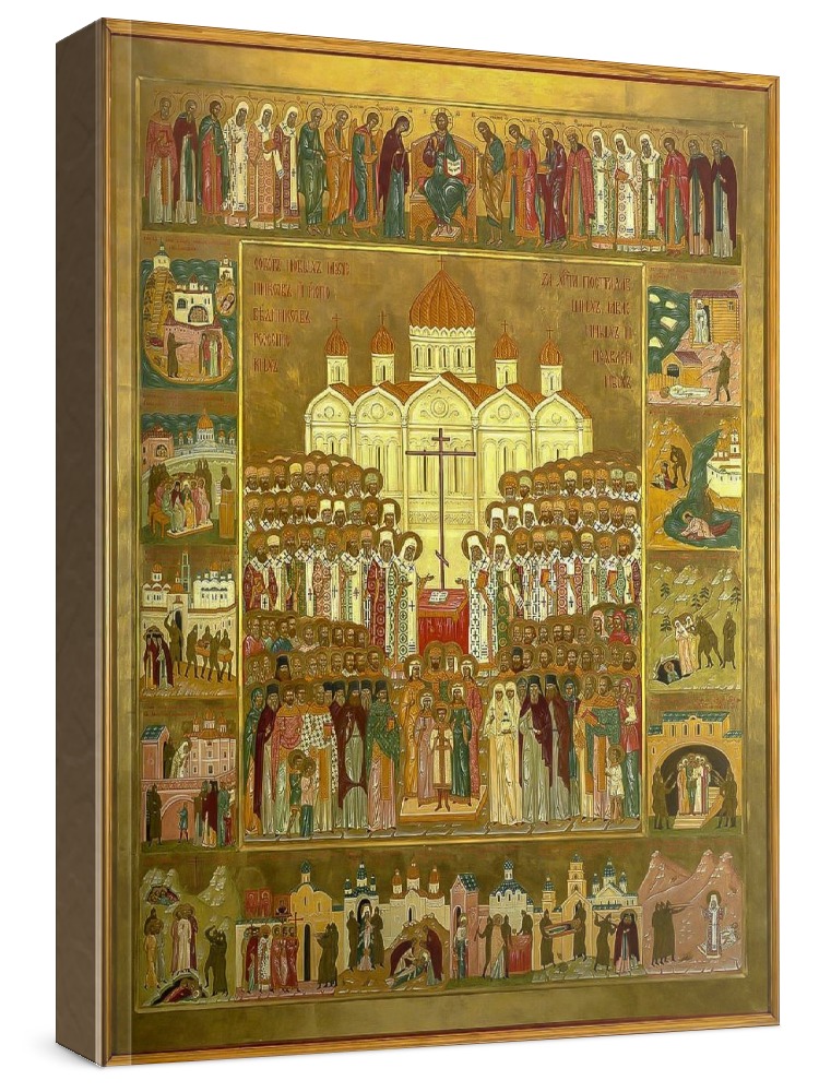 Российские новомученики (икона на дереве). Икона на заказ. Срок изготовления - 5-14 дней. Изображение нанесено на основу из натурального хвойного дерева методом прямой печати (не полиграфия). Деревянная основа иконы подвержена искусственному старению. Лик покрыт специальным лаком, что защищает икону от воздействий окружающей среды и обеспечивает хранение иконы в первозданном виде в течение нескольких десятилетий. Цена зависит от размера иконы (высота может незначительно отличаться от указанной величины в связи с точным соблюдением пропорций образца-оригинала): 10x13 - 1500 руб. 30x40 - 5000 руб. 60x80 - 15000 руб. 15x18 - 2250 руб. 40x60 - 8000 руб. 80x120 - 20000 руб. 20x25 - 3000 руб.