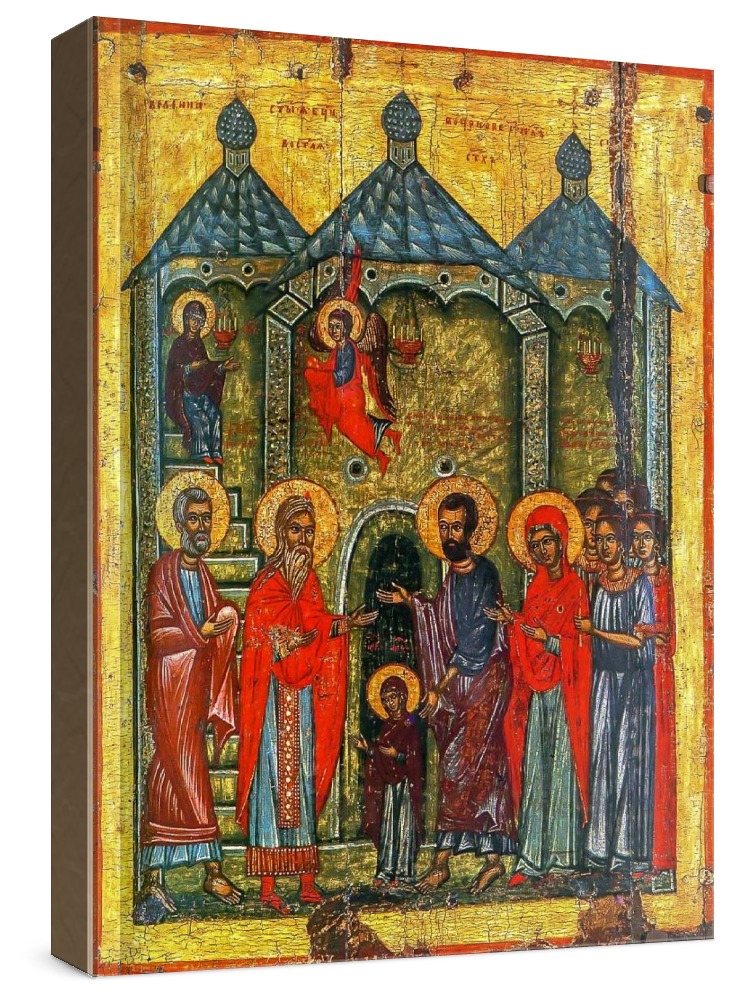 Икона введение во храм пресвятой богородицы (копия старинной иконы). Икона на заказ. Срок изготовления - 5-14 дней. Изображение нанесено на основу из натурального хвойного дерева методом прямой печати (не полиграфия). При работе соблюдены размерные пропорции и цветовая гамма оригинальной старинной иконы. Деревянная основа иконы подвержена искусственному старению. Лик покрыт специальным лаком, что защищает икону от воздействий окружающей среды и обеспечивает хранение иконы в первозданном виде в течение нескольких десятилетий. Цена зависит от размера иконы (высота может незначительно отличаться от указанной величины в связи с точным соблюдением пропорций оригинала): 10x13 - 1500 руб. 30x40 - 5000 руб. 60x80 - 15000 руб. 15x18 - 2250 руб. 40x60 - 8000 руб. 80x120 - 20000 руб. 20x25 - 3000 руб.