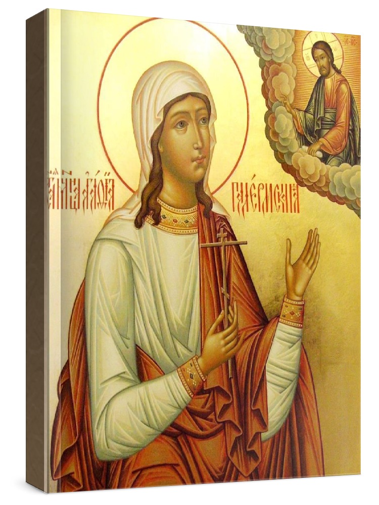 Агафия панормская (икона на дереве). Икона на заказ. Срок изготовления - 5-14 дней. Изображение нанесено на основу из натурального хвойного дерева методом прямой печати (не полиграфия). Деревянная основа иконы подвержена искусственному старению. Лик покрыт специальным лаком, что защищает икону от воздействий окружающей среды и обеспечивает хранение иконы в первозданном виде в течение нескольких десятилетий. Цена зависит от размера иконы (высота может незначительно отличаться от указанной величины в связи с точным соблюдением пропорций образца-оригинала): 10x13 - 1500 руб. 30x40 - 5000 руб. 60x80 - 15000 руб. 15x18 - 2250 руб. 40x60 - 8000 руб. 80x120 - 20000 руб. 20x25 - 3000 руб.