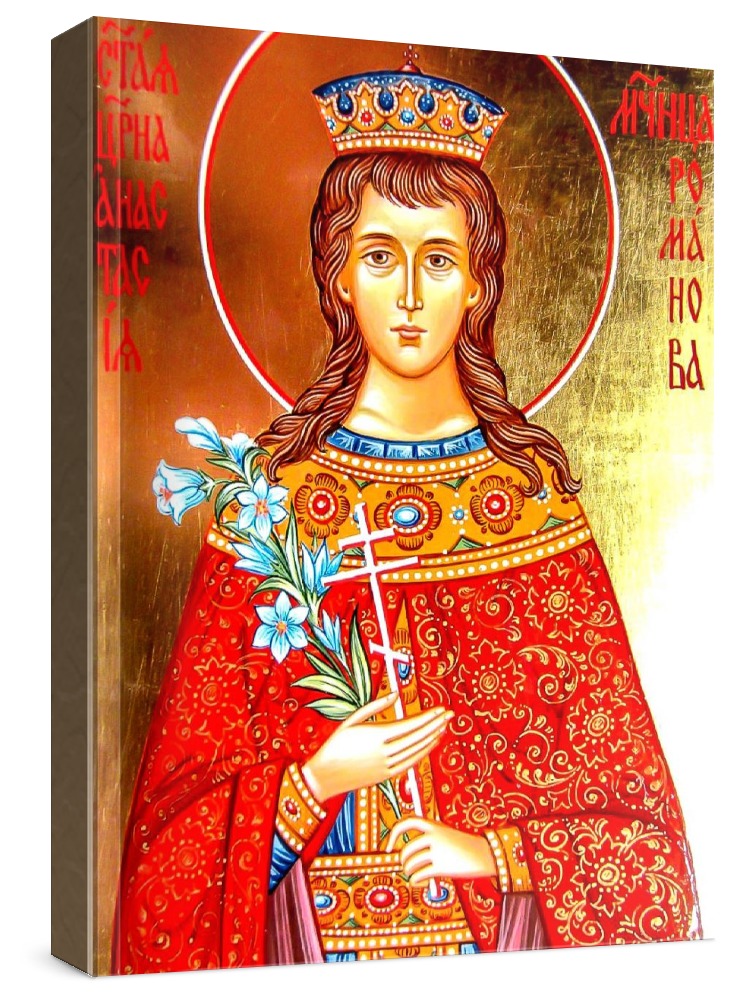 Анастасия романова (икона на дереве). Икона на заказ. Срок изготовления - 5-14 дней. Изображение нанесено на основу из натурального хвойного дерева методом прямой печати (не полиграфия). Деревянная основа иконы подвержена искусственному старению. Лик покрыт специальным лаком, что защищает икону от воздействий окружающей среды и обеспечивает хранение иконы в первозданном виде в течение нескольких десятилетий. Цена зависит от размера иконы (высота может незначительно отличаться от указанной величины в связи с точным соблюдением пропорций образца-оригинала): 10x13 - 1500 руб. 30x40 - 5000 руб. 60x80 - 15000 руб. 15x18 - 2250 руб. 40x60 - 8000 руб. 80x120 - 20000 руб. 20x25 - 3000 руб.