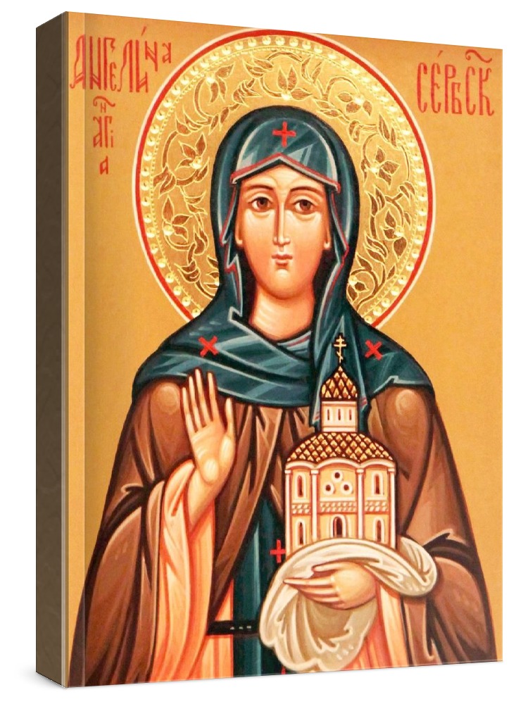 Ангелина сербская (икона на дереве). Икона на заказ. Срок изготовления - 5-14 дней. Изображение нанесено на основу из натурального хвойного дерева методом прямой печати (не полиграфия). Деревянная основа иконы подвержена искусственному старению. Лик покрыт специальным лаком, что защищает икону от воздействий окружающей среды и обеспечивает хранение иконы в первозданном виде в течение нескольких десятилетий. Цена зависит от размера иконы (высота может незначительно отличаться от указанной величины в связи с точным соблюдением пропорций образца-оригинала): 10x13 - 1500 руб. 30x40 - 5000 руб. 60x80 - 15000 руб. 15x18 - 2250 руб. 40x60 - 8000 руб. 80x120 - 20000 руб. 20x25 - 3000 руб.