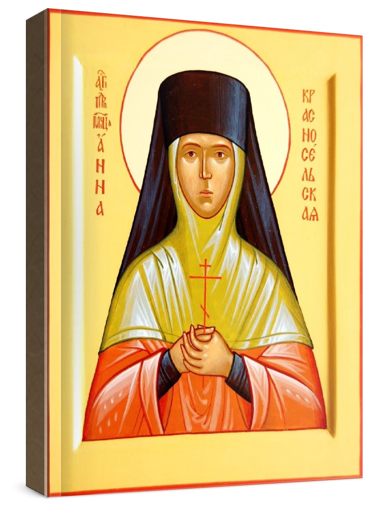 Анна макандина (икона на дереве). Икона на заказ. Срок изготовления - 5-14 дней. Изображение нанесено на основу из натурального хвойного дерева методом прямой печати (не полиграфия). Деревянная основа иконы подвержена искусственному старению. Лик покрыт специальным лаком, что защищает икону от воздействий окружающей среды и обеспечивает хранение иконы в первозданном виде в течение нескольких десятилетий. Цена зависит от размера иконы (высота может незначительно отличаться от указанной величины в связи с точным соблюдением пропорций образца-оригинала): 10x13 - 1500 руб. 30x40 - 5000 руб. 60x80 - 15000 руб. 15x18 - 2250 руб. 40x60 - 8000 руб. 80x120 - 20000 руб. 20x25 - 3000 руб.