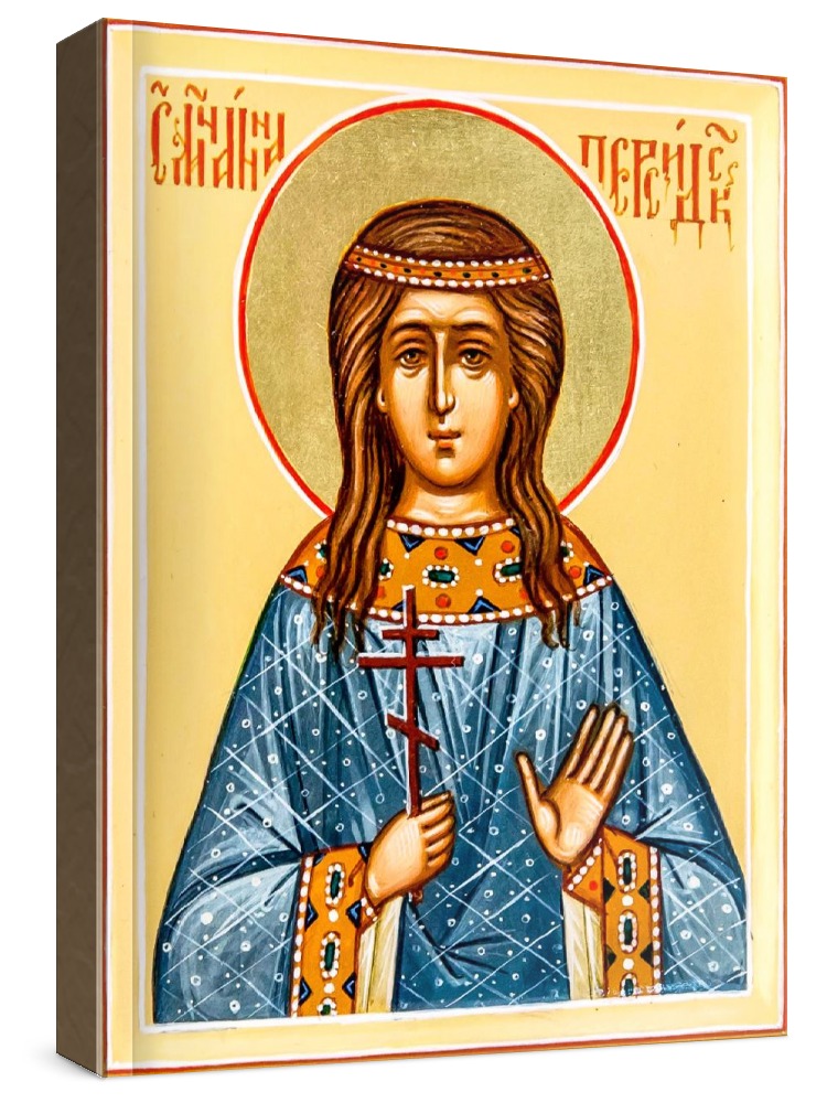 Анна персидская (икона на дереве). Икона на заказ. Срок изготовления - 5-14 дней. Изображение нанесено на основу из натурального хвойного дерева методом прямой печати (не полиграфия). Деревянная основа иконы подвержена искусственному старению. Лик покрыт специальным лаком, что защищает икону от воздействий окружающей среды и обеспечивает хранение иконы в первозданном виде в течение нескольких десятилетий. Цена зависит от размера иконы (высота может незначительно отличаться от указанной величины в связи с точным соблюдением пропорций образца-оригинала): 10x13 - 1500 руб. 30x40 - 5000 руб. 60x80 - 15000 руб. 15x18 - 2250 руб. 40x60 - 8000 руб. 80x120 - 20000 руб. 20x25 - 3000 руб.