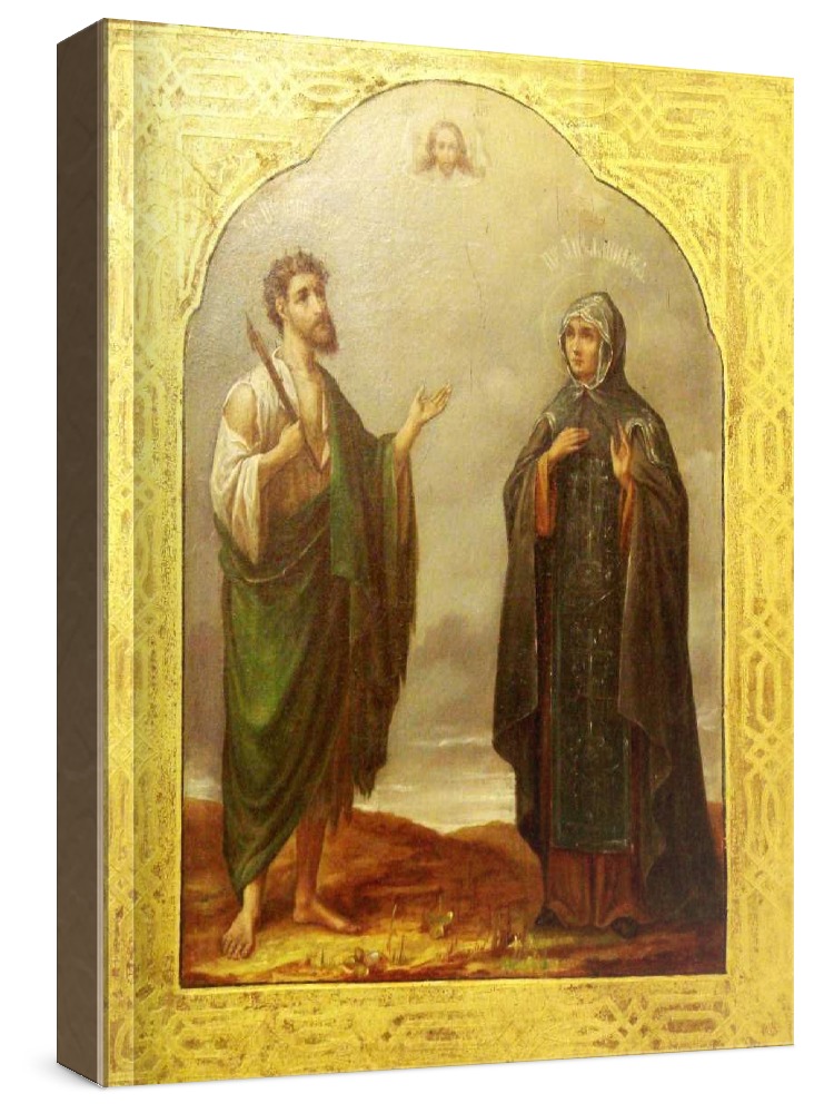 Прокопий и аполлинария (икона на дереве). Икона на заказ. Срок изготовления - 5-14 дней. Изображение нанесено на основу из натурального хвойного дерева методом прямой печати (не полиграфия). Деревянная основа иконы подвержена искусственному старению. Лик покрыт специальным лаком, что защищает икону от воздействий окружающей среды и обеспечивает хранение иконы в первозданном виде в течение нескольких десятилетий. Цена зависит от размера иконы (высота может незначительно отличаться от указанной величины в связи с точным соблюдением пропорций образца-оригинала): 10x13 - 1500 руб. 30x40 - 5000 руб. 60x80 - 15000 руб. 15x18 - 2250 руб. 40x60 - 8000 руб. 80x120 - 20000 руб. 20x25 - 3000 руб.