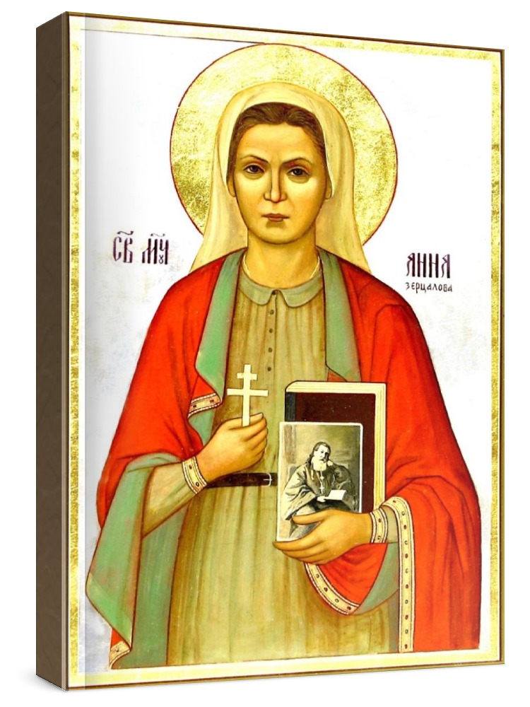 Анна зерцалова (икона на дереве). Икона на заказ. Срок изготовления - 5-14 дней. Изображение нанесено на основу из натурального хвойного дерева методом прямой печати (не полиграфия). Деревянная основа иконы подвержена искусственному старению. Лик покрыт специальным лаком, что защищает икону от воздействий окружающей среды и обеспечивает хранение иконы в первозданном виде в течение нескольких десятилетий. Цена зависит от размера иконы (высота может незначительно отличаться от указанной величины в связи с точным соблюдением пропорций образца-оригинала): 10x13 - 1500 руб. 30x40 - 5000 руб. 60x80 - 15000 руб. 15x18 - 2250 руб. 40x60 - 8000 руб. 80x120 - 20000 руб. 20x25 - 3000 руб.
