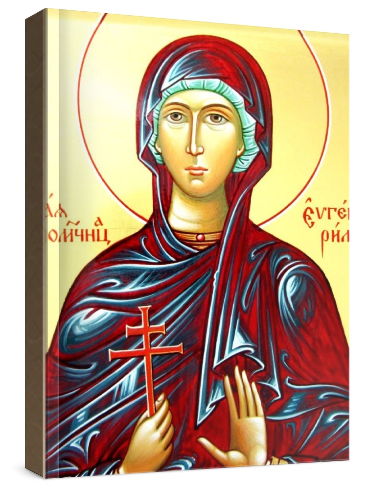 Евгения римская (икона на дереве). Икона на заказ. Срок изготовления - 5-14 дней. Изображение нанесено на основу из натурального хвойного дерева методом прямой печати (не полиграфия). Деревянная основа иконы подвержена искусственному старению. Лик покрыт специальным лаком, что защищает икону от воздействий окружающей среды и обеспечивает хранение иконы в первозданном виде в течение нескольких десятилетий. Цена зависит от размера иконы (высота может незначительно отличаться от указанной величины в связи с точным соблюдением пропорций образца-оригинала): 10x13 - 1500 руб. 30x40 - 5000 руб. 60x80 - 15000 руб. 15x18 - 2250 руб. 40x60 - 8000 руб. 80x120 - 20000 руб. 20x25 - 3000 руб.