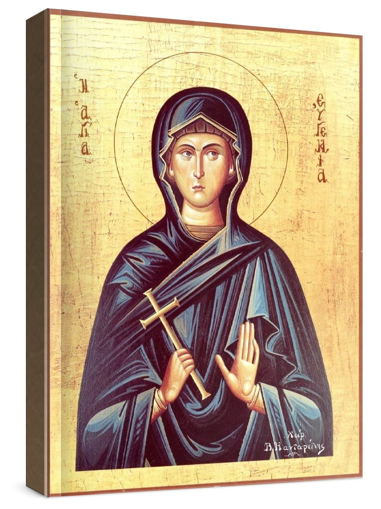 Икона евгения римская (копия старинной иконы). Икона на заказ. Срок изготовления - 5-14 дней. Изображение нанесено на основу из натурального хвойного дерева методом прямой печати (не полиграфия). При работе соблюдены размерные пропорции и цветовая гамма оригинальной старинной иконы. Деревянная основа иконы подвержена искусственному старению. Лик покрыт специальным лаком, что защищает икону от воздействий окружающей среды и обеспечивает хранение иконы в первозданном виде в течение нескольких десятилетий. Цена зависит от размера иконы (высота может незначительно отличаться от указанной величины в связи с точным соблюдением пропорций оригинала): 10x13 - 1500 руб. 30x40 - 5000 руб. 60x80 - 15000 руб. 15x18 - 2250 руб. 40x60 - 8000 руб. 80x120 - 20000 руб. 20x25 - 3000 руб.