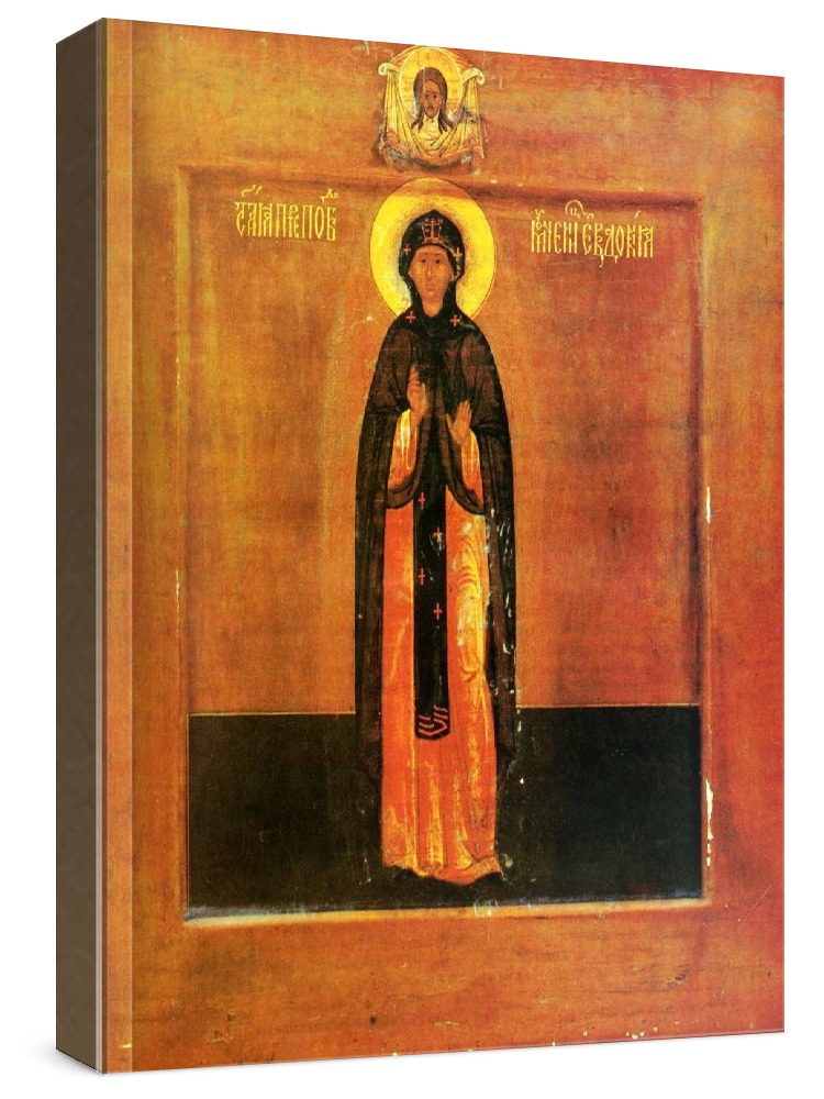 Икона евдокия илиопольская (копия старинной иконы). Икона на заказ. Срок изготовления - 5-14 дней. Изображение нанесено на основу из натурального хвойного дерева методом прямой печати (не полиграфия). При работе соблюдены размерные пропорции и цветовая гамма оригинальной старинной иконы. Деревянная основа иконы подвержена искусственному старению. Лик покрыт специальным лаком, что защищает икону от воздействий окружающей среды и обеспечивает хранение иконы в первозданном виде в течение нескольких десятилетий. Цена зависит от размера иконы (высота может незначительно отличаться от указанной величины в связи с точным соблюдением пропорций оригинала): 10x13 - 1500 руб. 30x40 - 5000 руб. 60x80 - 15000 руб. 15x18 - 2250 руб. 40x60 - 8000 руб. 80x120 - 20000 руб. 20x25 - 3000 руб.