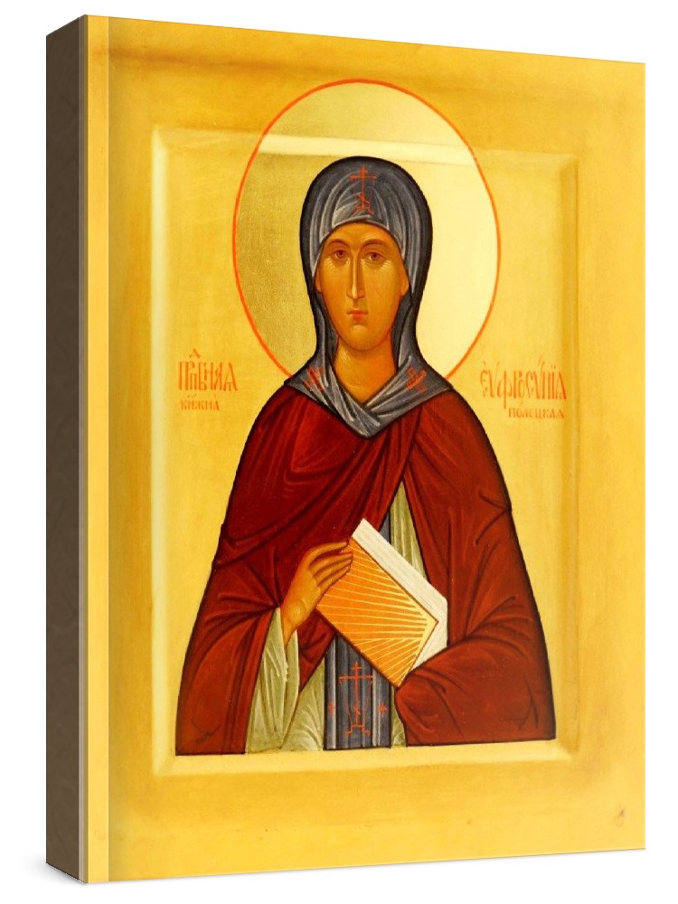 Евфросиния полоцкая (икона на дереве). Икона на заказ. Срок изготовления - 5-14 дней. Изображение нанесено на основу из натурального хвойного дерева методом прямой печати (не полиграфия). Деревянная основа иконы подвержена искусственному старению. Лик покрыт специальным лаком, что защищает икону от воздействий окружающей среды и обеспечивает хранение иконы в первозданном виде в течение нескольких десятилетий. Цена зависит от размера иконы (высота может незначительно отличаться от указанной величины в связи с точным соблюдением пропорций образца-оригинала): 10x13 - 1500 руб. 30x40 - 5000 руб. 60x80 - 15000 руб. 15x18 - 2250 руб. 40x60 - 8000 руб. 80x120 - 20000 руб. 20x25 - 3000 руб.