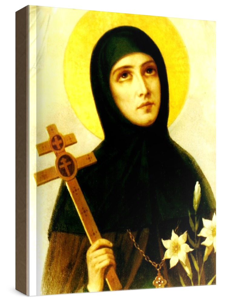 Евфросиния полоцкая (икона на дереве). Икона на заказ. Срок изготовления - 5-14 дней. Изображение нанесено на основу из натурального хвойного дерева методом прямой печати (не полиграфия). Деревянная основа иконы подвержена искусственному старению. Лик покрыт специальным лаком, что защищает икону от воздействий окружающей среды и обеспечивает хранение иконы в первозданном виде в течение нескольких десятилетий. Цена зависит от размера иконы (высота может незначительно отличаться от указанной величины в связи с точным соблюдением пропорций образца-оригинала): 10x13 - 1500 руб. 30x40 - 5000 руб. 60x80 - 15000 руб. 15x18 - 2250 руб. 40x60 - 8000 руб. 80x120 - 20000 руб. 20x25 - 3000 руб.