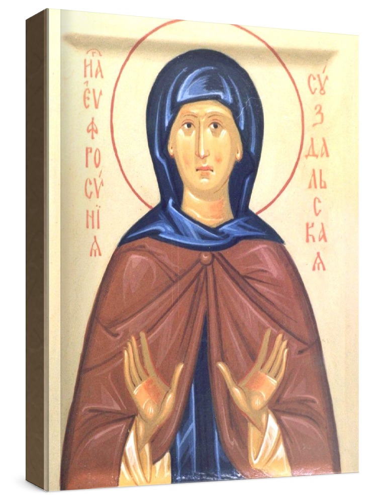 Евфросиния суздальская (икона на дереве). Икона на заказ. Срок изготовления - 5-14 дней. Изображение нанесено на основу из натурального хвойного дерева методом прямой печати (не полиграфия). Деревянная основа иконы подвержена искусственному старению. Лик покрыт специальным лаком, что защищает икону от воздействий окружающей среды и обеспечивает хранение иконы в первозданном виде в течение нескольких десятилетий. Цена зависит от размера иконы (высота может незначительно отличаться от указанной величины в связи с точным соблюдением пропорций образца-оригинала): 10x13 - 1500 руб. 30x40 - 5000 руб. 60x80 - 15000 руб. 15x18 - 2250 руб. 40x60 - 8000 руб. 80x120 - 20000 руб. 20x25 - 3000 руб.