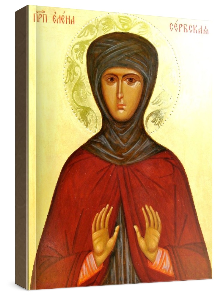 Елена сербская (икона на дереве). Икона на заказ. Срок изготовления - 5-14 дней. Изображение нанесено на основу из натурального хвойного дерева методом прямой печати (не полиграфия). Деревянная основа иконы подвержена искусственному старению. Лик покрыт специальным лаком, что защищает икону от воздействий окружающей среды и обеспечивает хранение иконы в первозданном виде в течение нескольких десятилетий. Цена зависит от размера иконы (высота может незначительно отличаться от указанной величины в связи с точным соблюдением пропорций образца-оригинала): 10x13 - 1500 руб. 30x40 - 5000 руб. 60x80 - 15000 руб. 15x18 - 2250 руб. 40x60 - 8000 руб. 80x120 - 20000 руб. 20x25 - 3000 руб.
