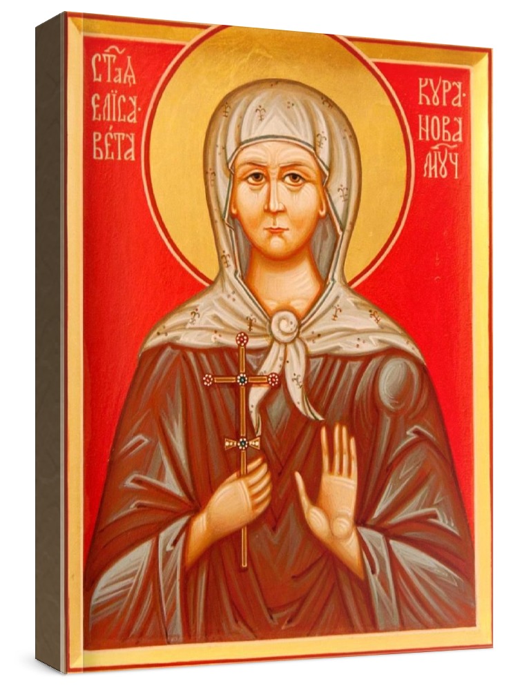 Елизавета куранова (икона на дереве). Икона на заказ. Срок изготовления - 5-14 дней. Изображение нанесено на основу из натурального хвойного дерева методом прямой печати (не полиграфия). Деревянная основа иконы подвержена искусственному старению. Лик покрыт специальным лаком, что защищает икону от воздействий окружающей среды и обеспечивает хранение иконы в первозданном виде в течение нескольких десятилетий. Цена зависит от размера иконы (высота может незначительно отличаться от указанной величины в связи с точным соблюдением пропорций образца-оригинала): 10x13 - 1500 руб. 30x40 - 5000 руб. 60x80 - 15000 руб. 15x18 - 2250 руб. 40x60 - 8000 руб. 80x120 - 20000 руб. 20x25 - 3000 руб.