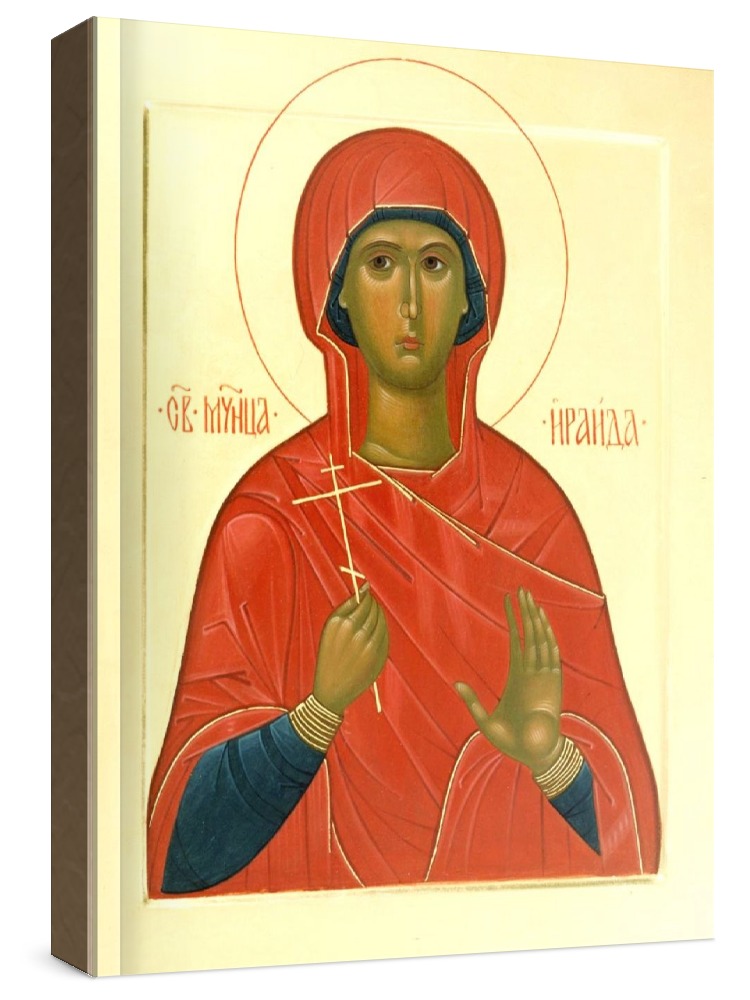 Ираида (икона на дереве). Икона на заказ. Срок изготовления - 5-14 дней. Изображение нанесено на основу из натурального хвойного дерева методом прямой печати (не полиграфия). Деревянная основа иконы подвержена искусственному старению. Лик покрыт специальным лаком, что защищает икону от воздействий окружающей среды и обеспечивает хранение иконы в первозданном виде в течение нескольких десятилетий. Цена зависит от размера иконы (высота может незначительно отличаться от указанной величины в связи с точным соблюдением пропорций образца-оригинала): 10x13 - 1500 руб. 30x40 - 5000 руб. 60x80 - 15000 руб. 15x18 - 2250 руб. 40x60 - 8000 руб. 80x120 - 20000 руб. 20x25 - 3000 руб.