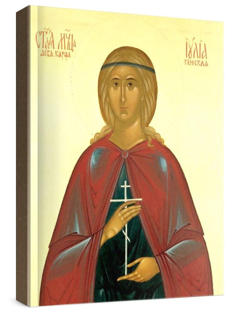 Юлия карфагенская (икона на дереве). Икона на заказ. Срок изготовления - 5-14 дней. Изображение нанесено на основу из натурального хвойного дерева методом прямой печати (не полиграфия). Деревянная основа иконы подвержена искусственному старению. Лик покрыт специальным лаком, что защищает икону от воздействий окружающей среды и обеспечивает хранение иконы в первозданном виде в течение нескольких десятилетий. Цена зависит от размера иконы (высота может незначительно отличаться от указанной величины в связи с точным соблюдением пропорций образца-оригинала): 10x13 - 1500 руб. 30x40 - 5000 руб. 60x80 - 15000 руб. 15x18 - 2250 руб. 40x60 - 8000 руб. 80x120 - 20000 руб. 20x25 - 3000 руб.
