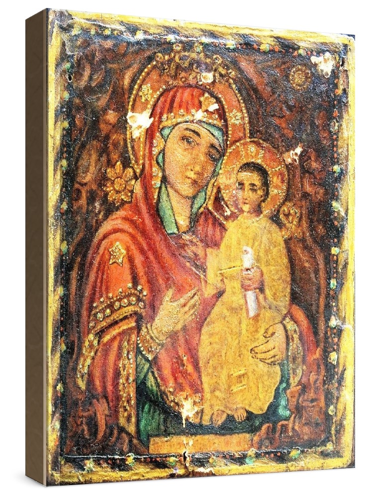 Икона от бед страждущих  (копия старинной иконы).     Изображение нанесено на основу из натурального хвойного дерева методом прямой печати.  При работе соблюдены размерные пропорции и цветовая гамма оригинальной старинной иконы.  Деревянная основа подвержена искусственному старению методом браширования, что делает икону более ценной и максимально похожей на многовековую семейную реликвию.  Цена зависит от размера иконы (высота может незначительно отличаться от указанной величины в связи с точным соблюдением пропорций оригинала):  10x13 - 1500 руб. 30x40 - 5000 руб. 60x80 - 15000 руб.   15x18 - 2250 руб. 40x60 - 8000 руб. 80x120 - 20000 руб.  20x25 - 3000 руб.