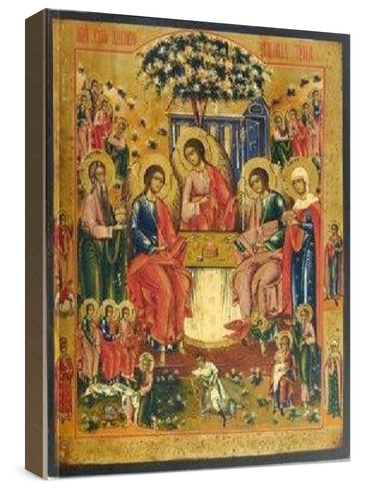 Икона троица (копия старинной иконы). Изображение нанесено на основу из натурального хвойного дерева методом прямой печати. При работе соблюдены размерные пропорции и цветовая гамма оригинальной старинной иконы. Деревянная основа подвержена искусственному старению методом браширования, что делает икону более ценной и максимально похожей на многовековую семейную реликвию. Цена зависит от размера иконы (высота может незначительно отличаться от указанной величины в связи с точным соблюдением пропорций оригинала): 10x13 - 1500 руб. 30x40 - 5000 руб. 60x80 - 15000 руб. 15x18 - 2250 руб. 40x60 - 8000 руб. 80x120 - 20000 руб. 20x25 - 3000 руб.
