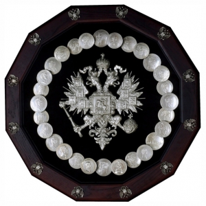 Панно большое многогранник герб россии. Размер:62х62х6,5 см Материал:Дерево, медь, гальванопластика, позолота, серебрение, эмаль, бархат Страна:РОССИЯ Производство: Sanaig  развернуть описание ▼