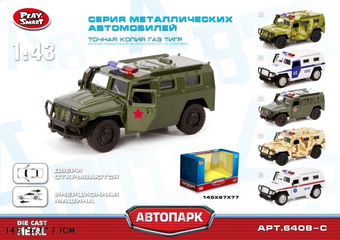 Play Smart инерционная металлическая военная машинка , 14,5х5,7х7см