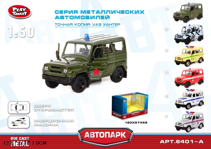 Play Smart инерционная металлическая военная машинка, 12,5х5,7х7см