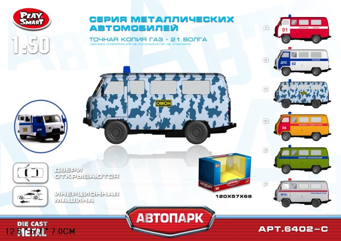 Play Smart инерционная металлическая машинка омон, 12,5х5,7х7см