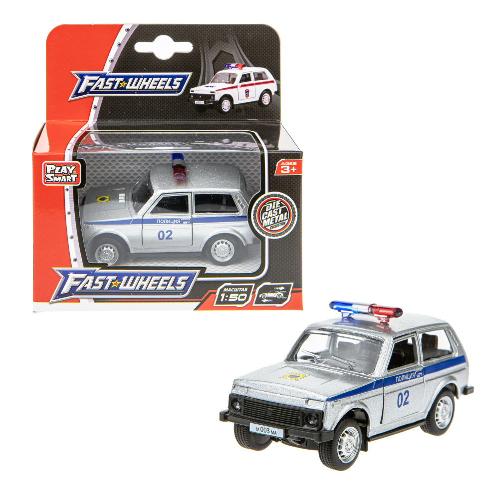 Play Smart инерционная металлическая машинка полиция, 12х5,7х6,8см