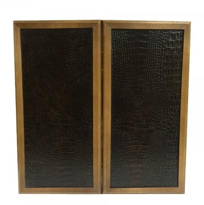 Нарды кожаные аллигатор большие. Нарды “Кожаные Аллигатор” большие - современная версия одной из первых настольных игр, известных человечеству. Нарды появились в Малой Азии и остаются популярны уже более пяти тысяч лет! Для изготовления игры всегда использовались самые лучшие материалы. Это традиция сохраняется и по сей день. Нарды “Кожаные Аллигатор” большие выполнены из тёмных пород дерева. Внешняя сторона доски обтянута экокожей, фактура которой имитирует кожу крокодила. Она прекрасно сочетается с обрамлением из дерева и предают набору поистине роскошный вид. В комплект входят игральные кости и два набора по пятнадцать фишек: из светлого и тёмного дерева в тон корпуса доски. Внутренняя сторона игрового поля декорирована симметричным геометрическим орнаментом. По краям расположены лузы для расстановки фишек на доске. Нарды – Это особое приобретение. Это - игра, талисман и необычный элемент интерьера одновременно. Умелая стратегия и удача - лучшие спутники каждой партии!