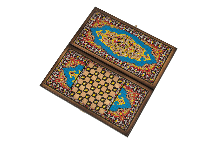 Нарды + шашки "сирия голубые" большие (россия, дерево, 6. Нарды “Сирия Голубые” большие - коллекционная версия древнейшей игры на земле, которая зародилась на востоке более пяти тысяч лет назад. Правила игры сохранились до наших дней практически без изменений. Цель игры - провести фишки по полю, зайти в дом и покинуть его пределы раньше соперника. Игроки определяют количество ходов выбрасывая кости: в зависимости от выпавшего числа каждый из участников перемещает фишки, пытаясь опередить соперника и нарушить его комбинацию своими передвижениями. Доска, выполненная из натурального дерева, оснащена лузами, которые повторяют компоновку фишек на поле и позволяют правильно расставить их на доске. В наборе две игральные кости и два комплекта черных и белых фишек по пятнадцать штук каждого вида. Нарды “Сирия Голубые” большие выполнены в традиционном для востока лазурном цвете, который так часто прослеживается в декоре индийской архитектуры. Этот цвет считается символом семейного благополучия.