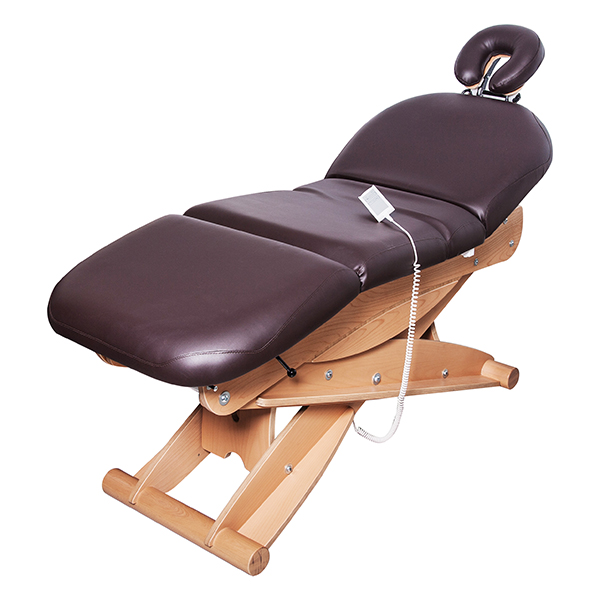 Кушетка оснащена двумя электромоторами, позволяющими регулировать высоту кушетки и положение подножной и спиной части. Регулировка спинной части осуществляется с помощью газлифта. Кушетка оснащена съемным подголовником.