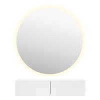 Зеркало парикмахерское сфера. Зеркало СФЕРА придаст очарование и домашний уют вашему салону. По желанию клиента зеркало может быть изготовлено с LED-подсветкой. Идеально сочетается с консолью, которая оснащена двумя выдвижными ящиками. Материал консоли – лдсп/пластик. Способ крепления: к стене. Размер зеркала: диаметр 100 см Размер консоли (ШхГхВ): 100х30х22 см Артикул: РТ-СФР Бренд: Имидж Мастер