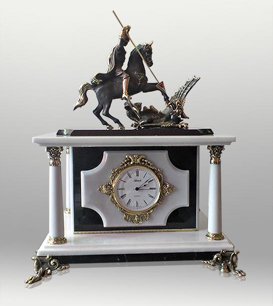 Часы-сейф из черно-белого мрамора "георгий-победоносец"