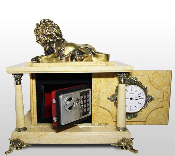 Часы-сейф из мрамора с львом