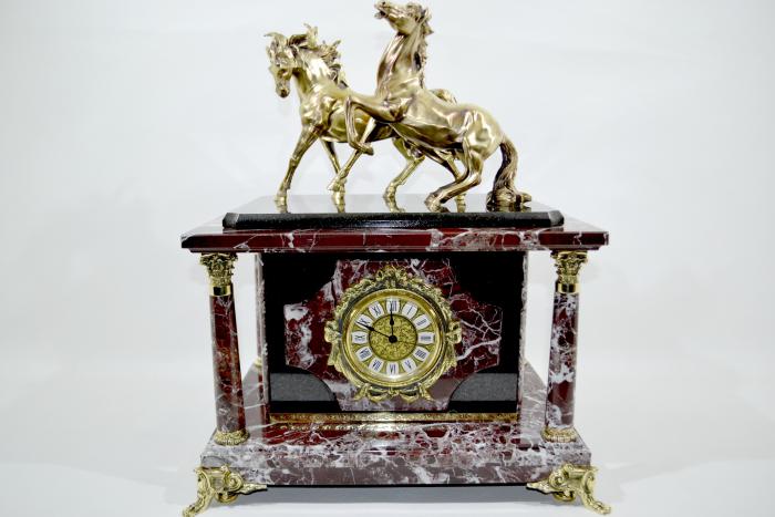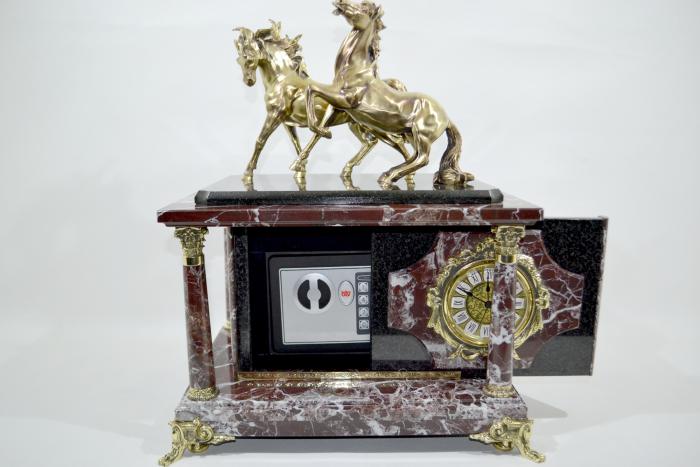 Часы-сейф из яшмы с лошадками Часы-сейф из яшмы с лошадками Часы-сейф из яшмы с лошадками