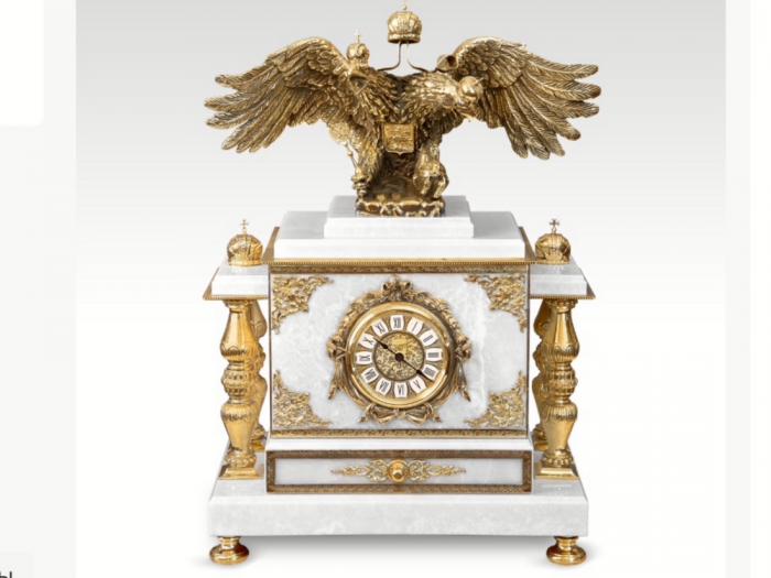 Часы-сейф из мрамора двуглавый орел(арт.с-027).