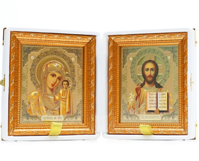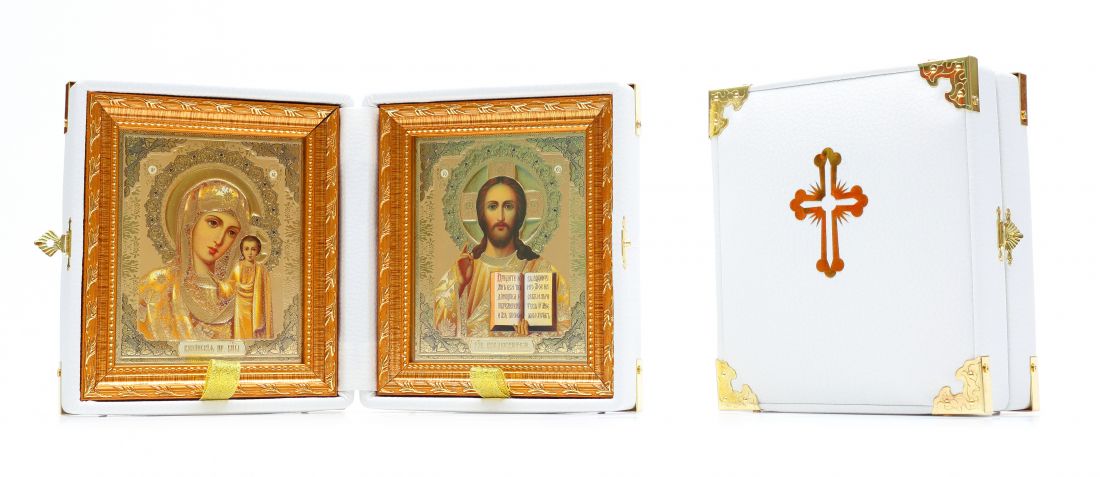 Икона складень казанская-спаситель (белая кожа) Икона складень казанская-спаситель (белая кожа) Икона складень казанская-спаситель (белая кожа)