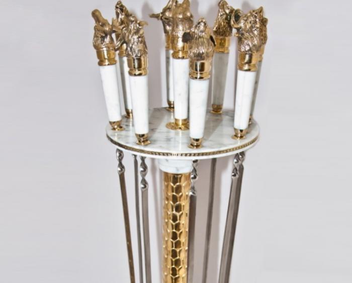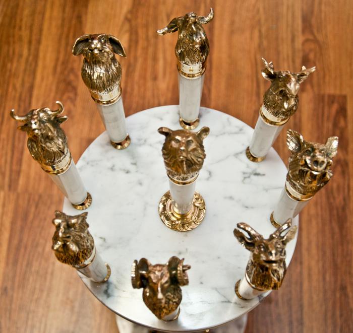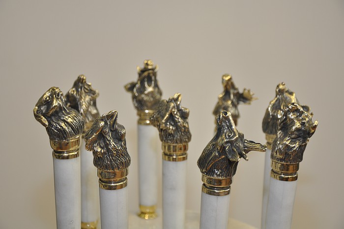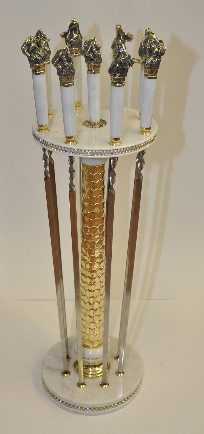 Набор шампуров из белого мрамора с головами зверей