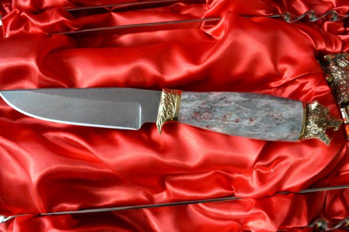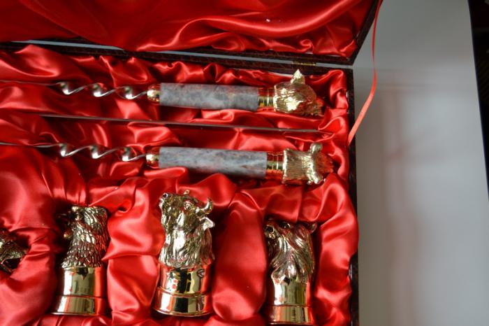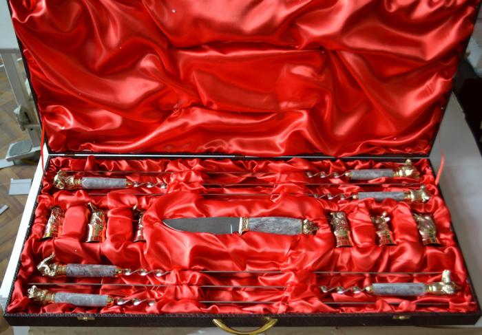 Шампура из мрамора с чарками и с ножом дамасской стали