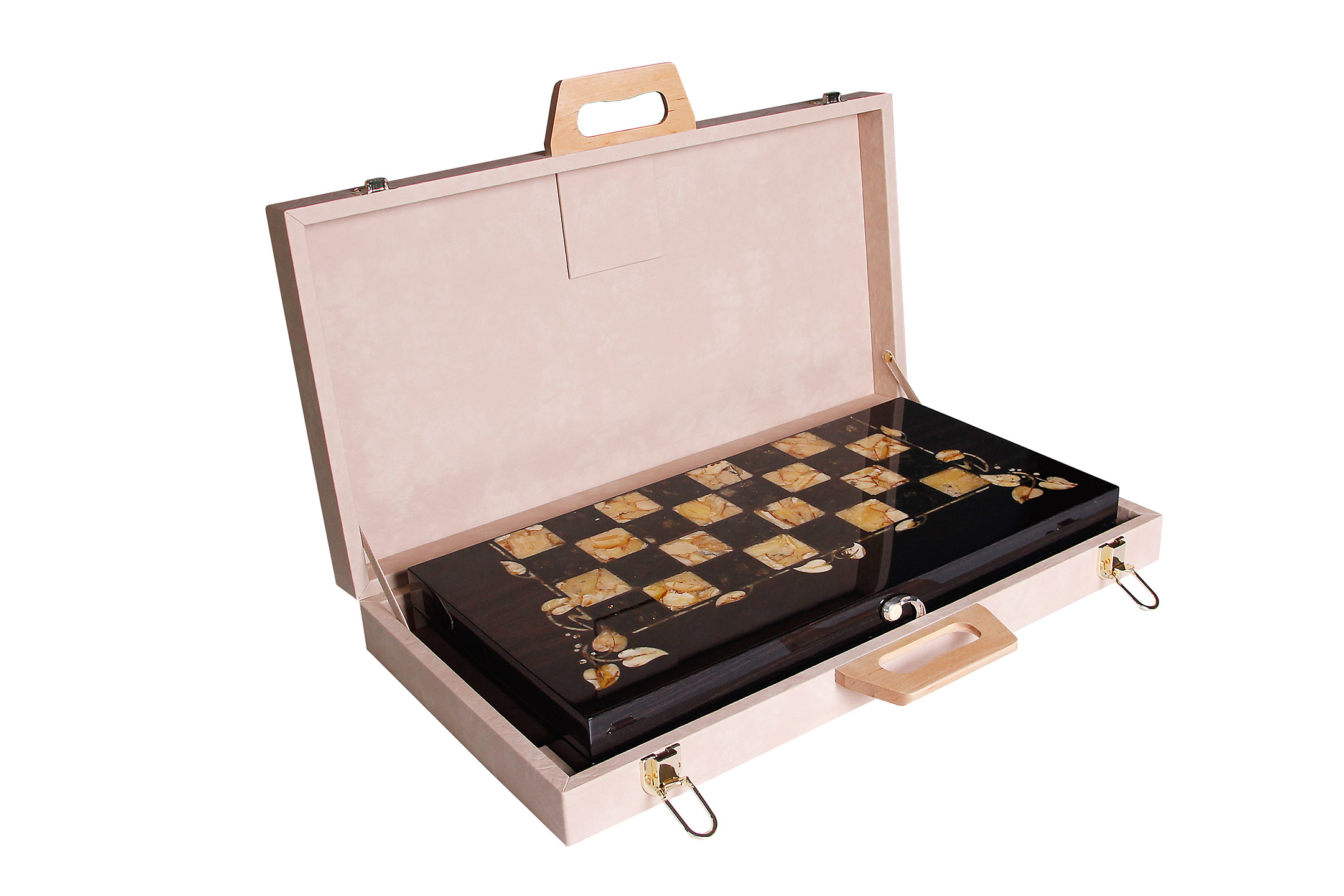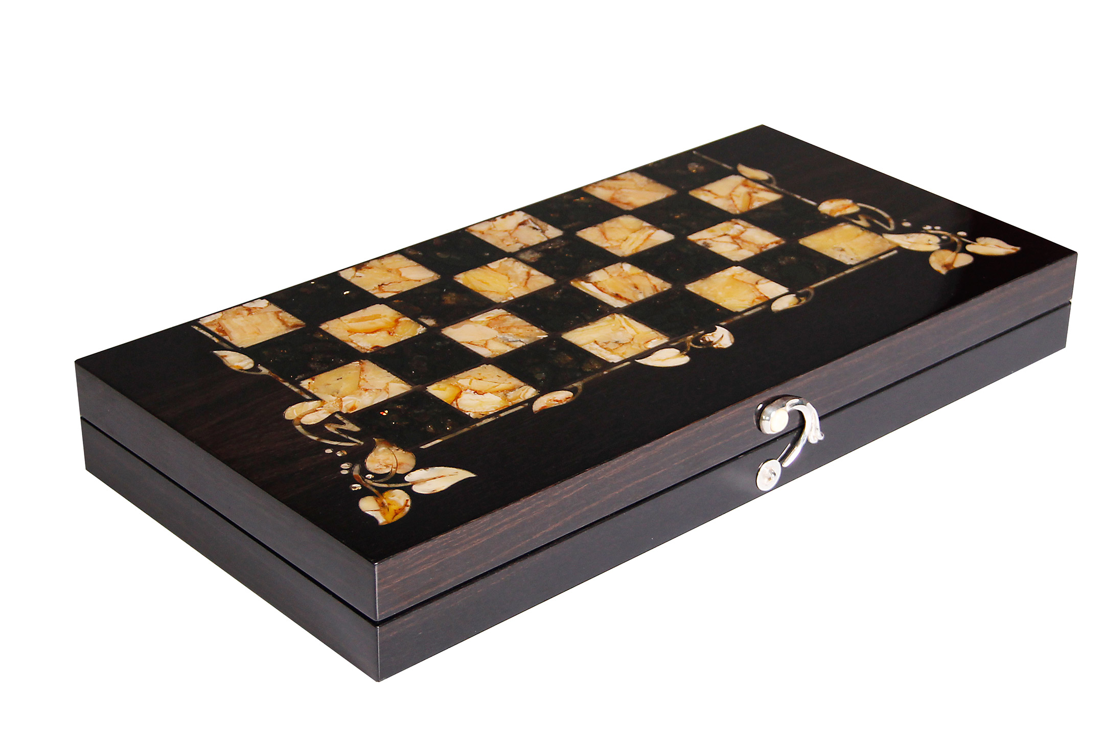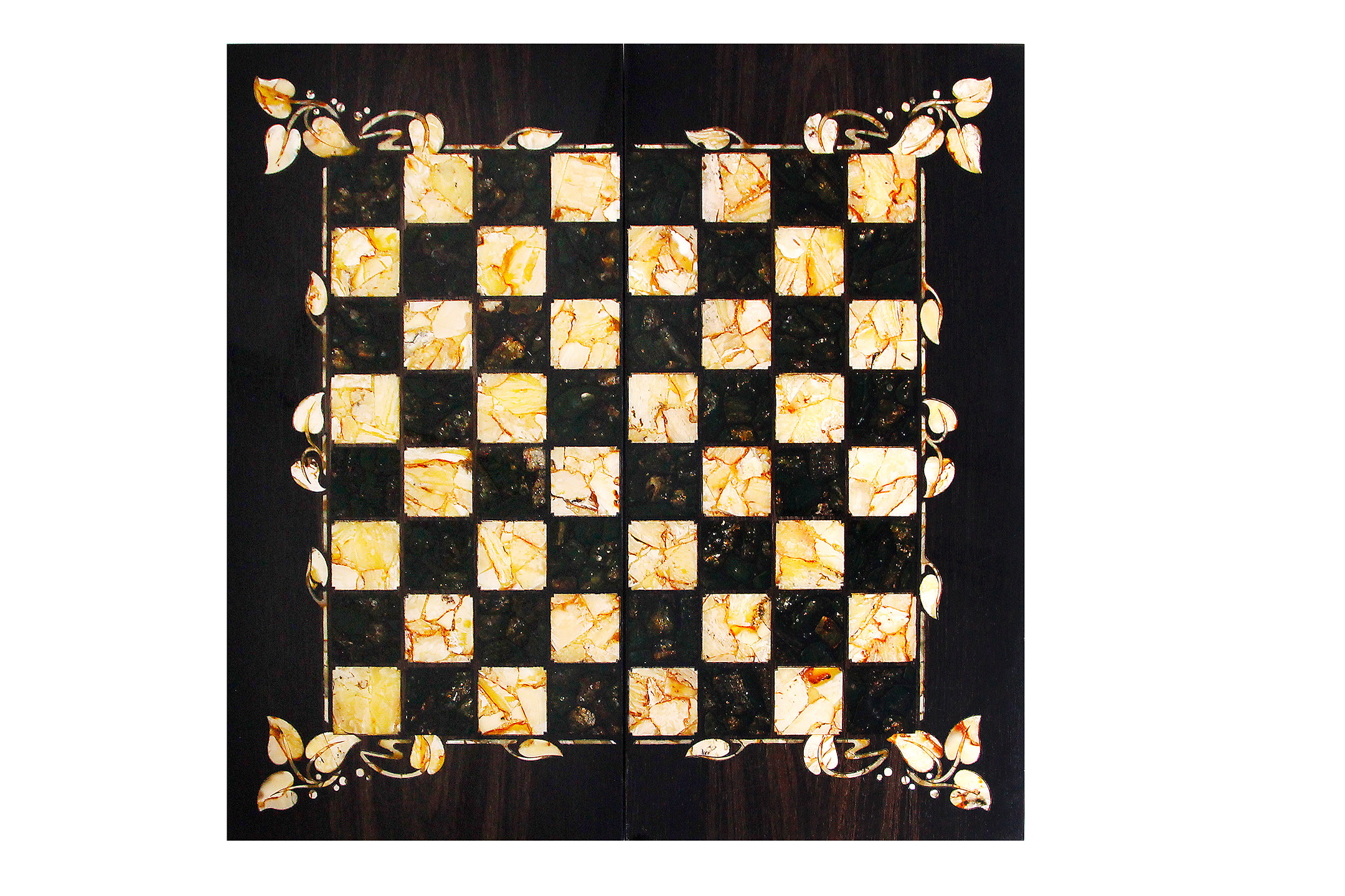Шахматы из янтаря "флора", мореный дуб, янтарь, 42х42см