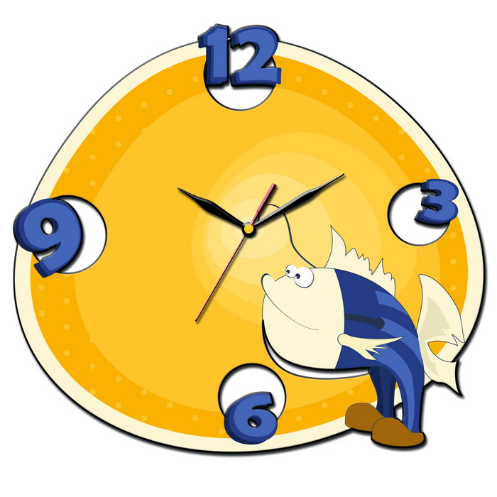 Корпус: часов выполнен из металла, арабские цифры. Часы круглые, на часах изображена рыбка. Открытые, без стекла, не боятся влажной уборки. Отлично будут смотреться в виде дополнительного декора в доме, в детской комнате