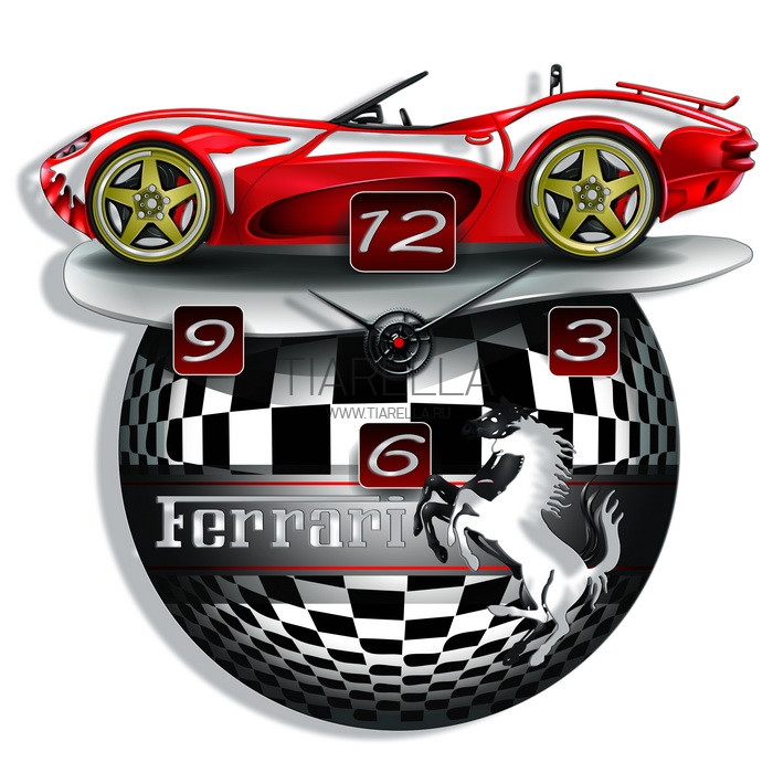 Корпус: часов выполнен из металла, арабские цифры. Часы круглые, с красной машиной и логотипом Феррари, открытые, без стекла, не боятся влажной уборки. Отлично будут смотреться в виде дополнительного декора в доме, в детской комнате