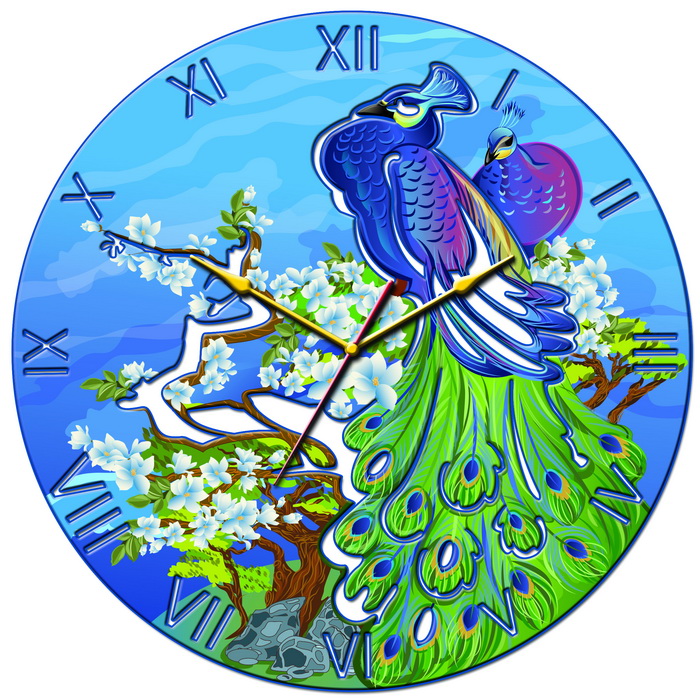 Корпус: часов выполнен из металла, римские цифры. Часы круглые, на часах изображен павлин с красивым хвостом на веточке дерева. Открытые, без стекла, не боятся влажной уборки. Отлично будут смотреться в виде дополнительного декора в доме