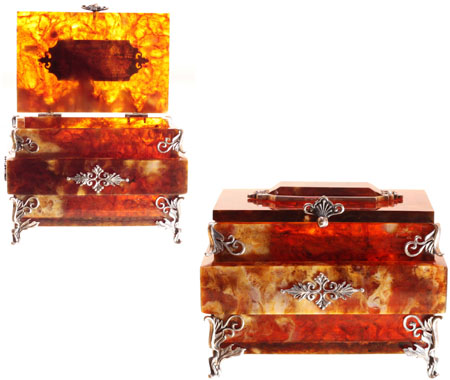 Шкатулка "ларец" из янтаря и серебра