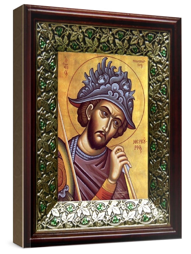 Икона меркурий кесарийский (21х24), киот со стразами